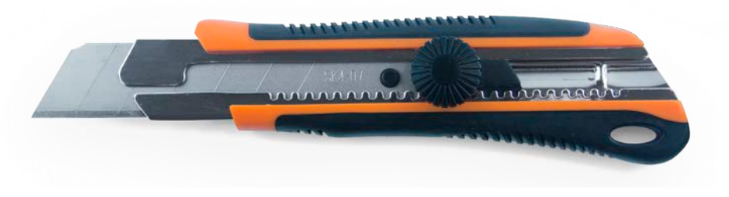 Нож с ломающимся лезвием шириной 25 мм, ручной замок для точной резки. Имеет магазин на два запасных лезвия. Корпус из прочного АБС-пластика. Рукоятка с резиновым покрытием обеспечивает надежный и эргономичный захват. Изделие имеет металлическую направляющую лезвия, что значительно продлевает срок службы инструмента. Лезвие изготовлено из высококачественной стали.