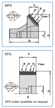 KFA = прямая фреза, поворотный шпиндель; радиусная фреза с несколькими радиусами и фаской; радиусы разработаны в соответствии с требованиями заказчика
