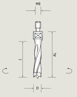 | D mm | I mm | L2 mm | Артикул левое вращение | Артикул правое вращение | |