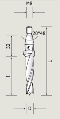 Сверло глухое 4 спирали с зенковкой M8 20° WS Nordutensili 013